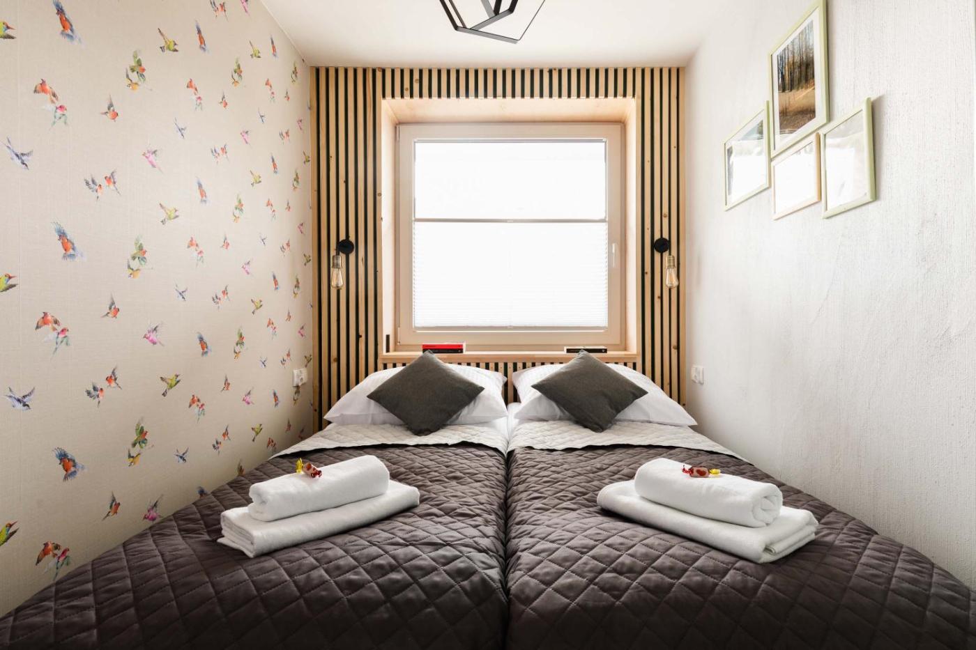 Apartament z 2 sypialniami. This apartment includes 1 living room, 2 separate bedrooms and 1 bathroom with a shower and a hairdryer. In the kitchenette, guests will find a stovetop, a refrigerator, a dishwasher and kitchenware. The apartment offers a flat-screen TV, a washing machine, a seating area, an electric kettle as well as city views. The unit has 4 beds. Apartament - 6 osobowy. Powierzchnia pokoju ok.: 45 mkw.